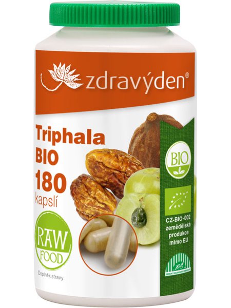 BIO a RAW triphala prášek Zdravý den® v kapslích je tradiční kombinací tří plodů amalaki, bhibitaki a haritaki.